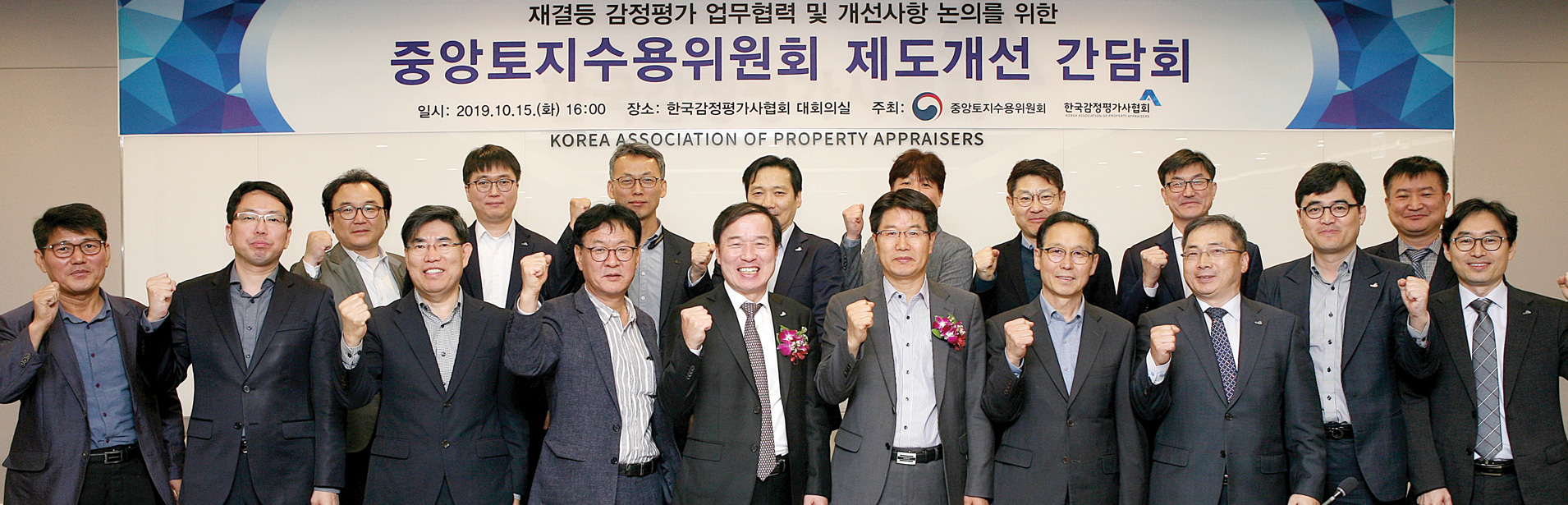 한국감정평가사협회는 지난 10월 15일 협회 대회의실에서 「중앙토지수용위원회 제도개선 간담회」를 개최했다.