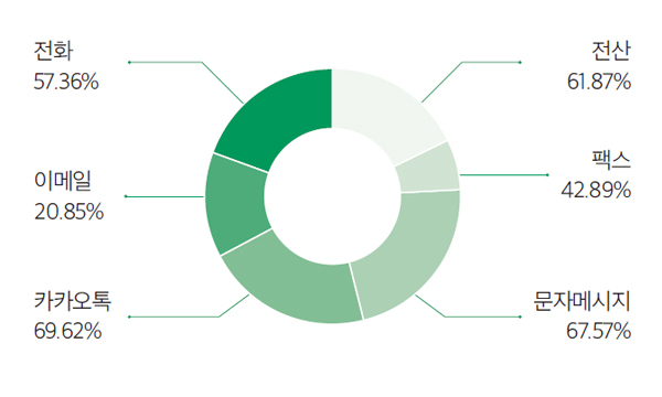금융기관은 주로 카카오톡(69.62%), 문자메시지(67.57%), 전산(61.87%), 전화(57.36%)를 이용하여 탁상감정을 의뢰하는 것으로 조사되었다. 이외에 팩스(42.89%)와 이메일(20.85%)도 활용하고 있었다.② 금융기관의 탁상감정 의뢰 건수
