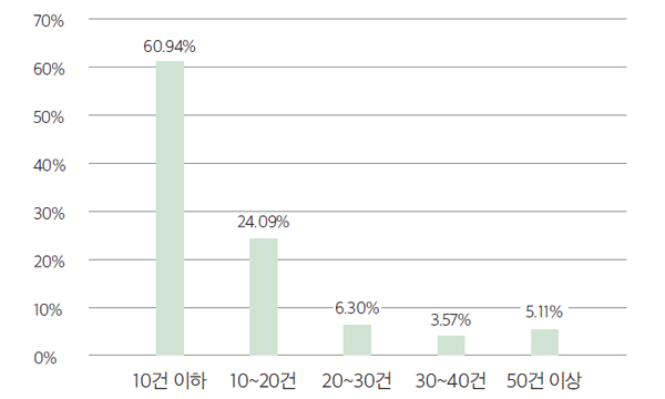 응답자의 약 60.94%가 하루 10건 미만이라고 답했다. 전체의 약 85.03%는 하루에 20건 미만의 탁상을 의뢰받는 것으로 나타났다.금융기관의 탁상감정 의뢰 방법(복수응답) 금융기관의 탁상감정 의뢰 건수