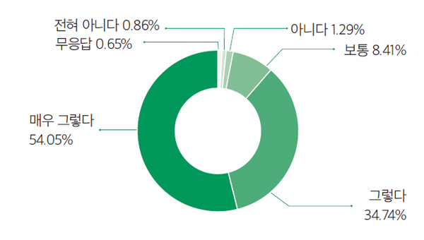 탁상감정 용어 개정의 필요성에 대해 응답자의 약 69.87%는 ‘그렇다’ 또는 ‘매우 그렇다’라고 답했고, ‘보통’이라고 응답한 경우도 약 22.13%로 조사되었다. 반면, 응답자의 약 8%만이 용어 개정이 ‘필요 없다’라고 응답했다.탁상감정 용어 개정의 필요성