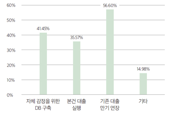 기타 응답도 약 14.98%로 나타났는데, 이는 다른 업체의 담보가액 적정 여부 확인, 금융기관 담당자가 투자 목적이나, 직원 또는 지인의 부동산 가격 확인 등 개인적 목적으로 탁상감정을 활용하는 경우도 있는 것으로 나타났다.